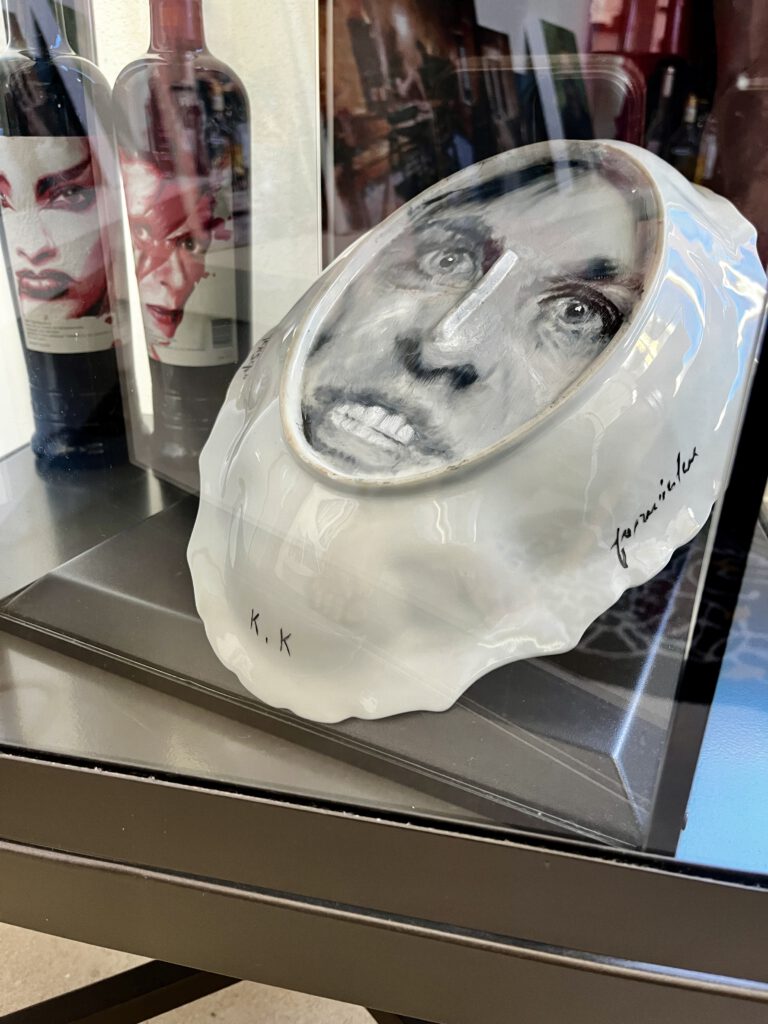 Foreground: „K.K.” oil on the back of porcelain plate Emilio Fornieles © 2023